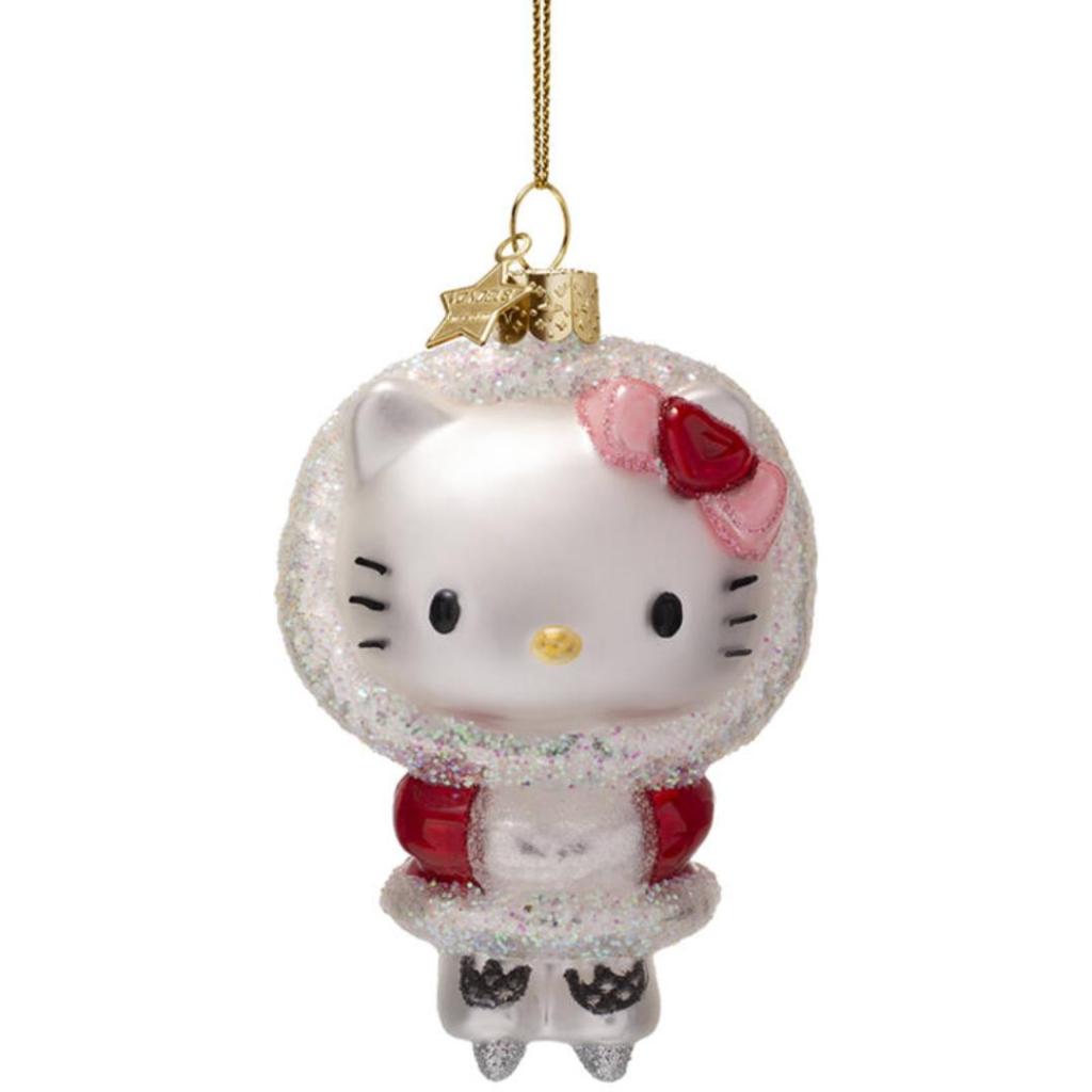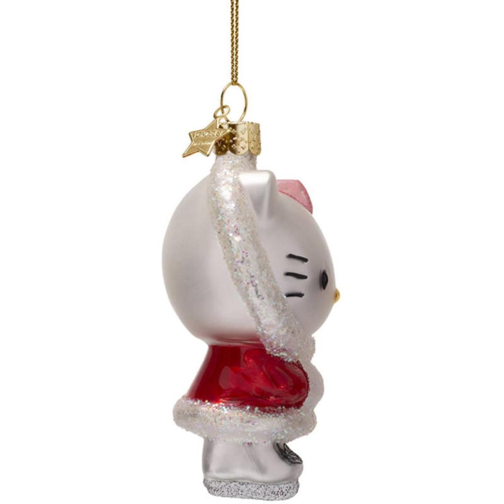 Hello Kitty is klaar voor een ritje op het ijs! Dit glazen kerstornament van Vondels toont haar in een feestelijke outfit met schaatsen aan, glitterjasje en haar iconische roze strik. Een vrolijke blikvanger in je boom en perfect voor liefhebbers van Sanrio, schattige kerstdecoratie of winterse taferelen. Elk ornament is met de hand gemaakt en dus uniek.