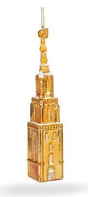 Schitterende kerstbal van de Onze Lieve Vrouwetoren in Amersfoort, vakkundig vervaardigd uit glas en prachtig goud geschilderd. Elegant verpakt in een kartonnen vensterverpakking. Een uniek stukje Amersfoort voor in jouw kerstcollectie. Van het merk "De Ballen Uit". Voeg een vleugje historische pracht toe aan je kerstboom!