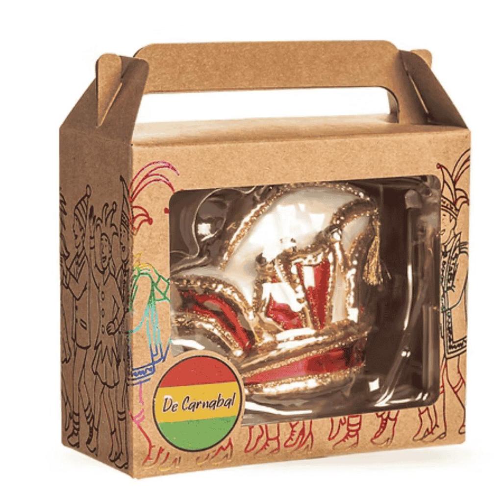 Breng de Oeteldonkse gezelligheid naar je kerstboom! Deze glazen kerstbal stelt de klassieke carnavalssteek voor in de herkenbare kleuren van Den Bosch: rood, wit en geel. In Oeteldonk draait carnaval om saamhorigheid, humor en traditie – precies wat deze feestelijke kleuren uitdragen.