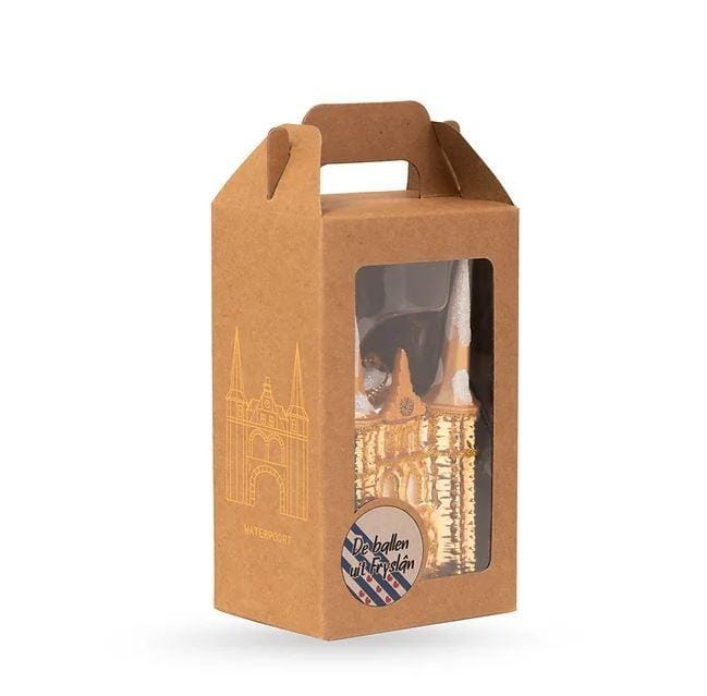 Eindelijk zijn ze er! Echte Friese kerstballen. Kom jij uit Friesland dan moet je deze echt in de kerstboom hebben deze kerst. De Waterpoort zit in een kraft kartonnen doosje met een mooie print op beide kanten. Perfect als kado.... maar eerst hang je hem natuurlijk in je eigen boom!