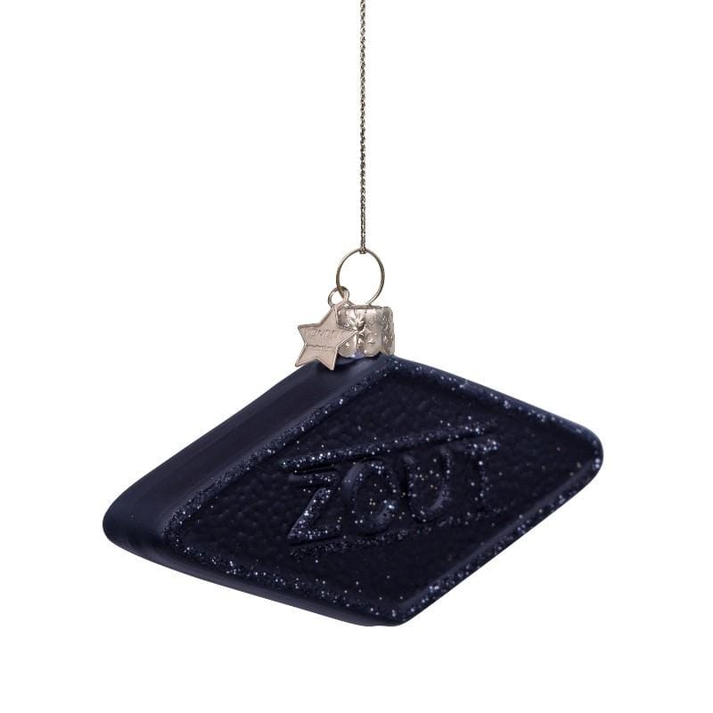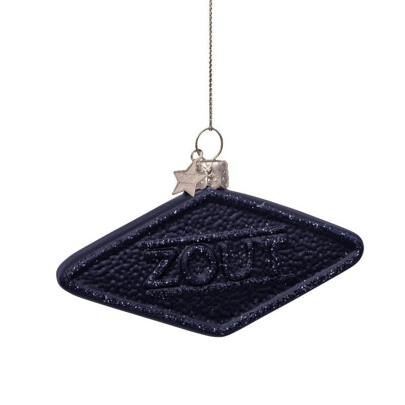 Deze eigenzinnige kerstbal van Vondels is geïnspireerd op een echte Nederlandse klassieker: zoute drop. Het ornament heeft een diepe zwarte kleur, een licht geribbelde structuur en de herkenbare opdruk ZOUT. De subtiele glitters geven de kerstbal nét dat feestelijke randje.