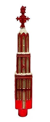 Schitterende kerst piek van de Domtoren in Utrecht, gehuld in feestelijk rood, ter ere van Sint Maarten. Met zorg vervaardigd voor een magische touch voor in jouw kerstdecoratie. Bestel deze unieke piek nu en breng de betovering van Utrecht naar jouw kerstboom! Ook te koop in onze winkel in Rotterdam Noord.