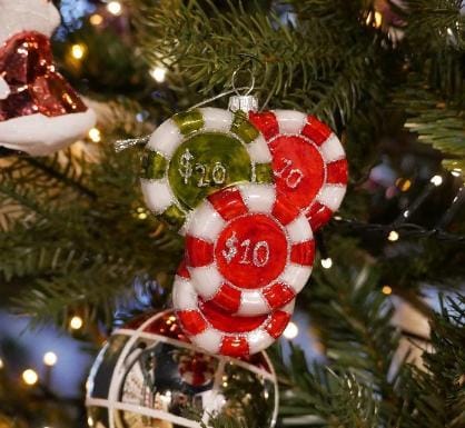 Zet in op een onvergetelijke kerst met deze unieke kerstbal in de vorm van casino chips! De glanzende kleuren en de authentieke details maken deze kerstbal tot een echte eye-catcher. Perfect voor de liefhebber van een gokje of als gespreksstarter tijdens de feestdagen.