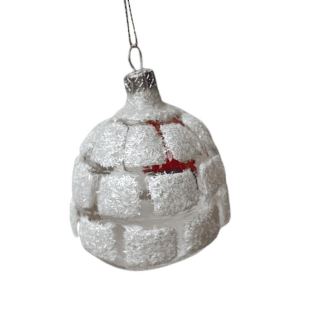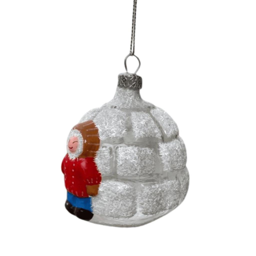 Deze handgemaakte kerstbal in de vorm van een iglo met een vrolijk kind in rode jas brengt direct winterse gezelligheid in je kerstboom. De glinsterende witte structuur geeft het ornament een ijzige uitstraling die prachtig het licht vangt.