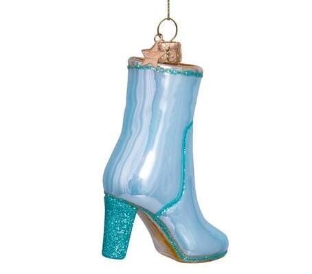 Dit lichtblauwe laarsje met hak is een opvallend kerstornament dat elegantie en kleur combineert. De glanzende afwerking en subtiele glitterdetails op de hak geven het ornament een frisse, moderne uitstraling. Een mooie toevoeging aan de kerstboom voor liefhebbers van mode, accessoires en bijzondere kerstdecoratie.