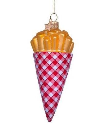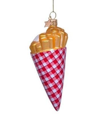 Patat met Mayonaise, wie is er niet gek op? Deze glazen kerstbal van Vondels is onmisbaar in het kerstboompje van de snackbar! Maar natuurlijk kun je hem ook buiten kerst om als decoratie ophangen, zowel in het eetcafé of gewoon thuis. Leuk om te combineren met onze snack kerstballen, zoals de Frikandel Speciaal en de Kroket.