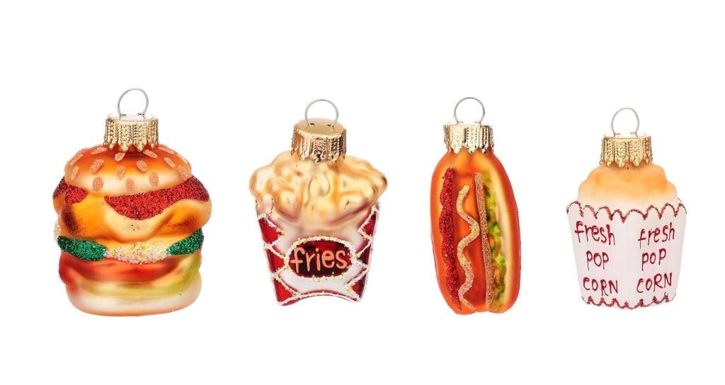 Set van 4 Fast Food Kerstballen