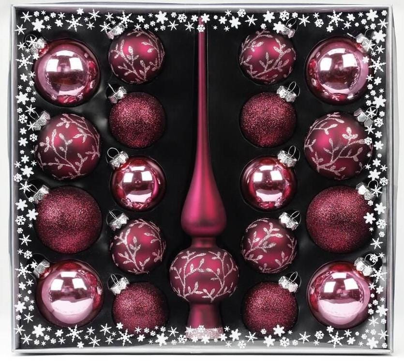 Kerstballen Set 19 Delig met Piek Berry Kiss – Inges Christmas Decor (Glas)