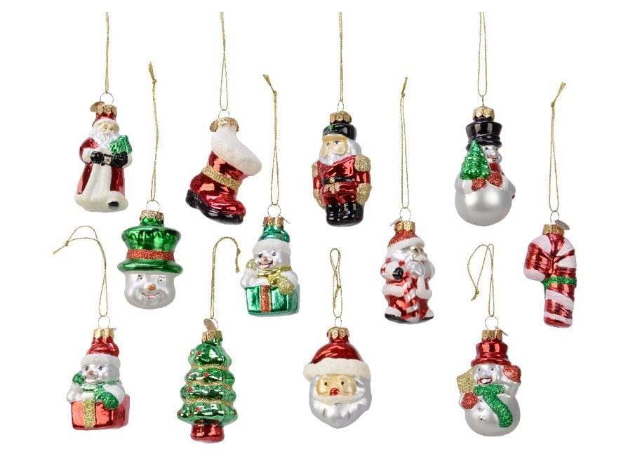 Set van 12 mini kerstballen: Verschillende klassieke kerstfiguren