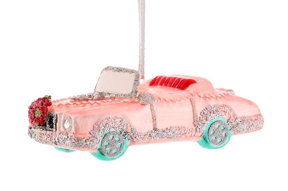 Kerstbal Trouwauto roze