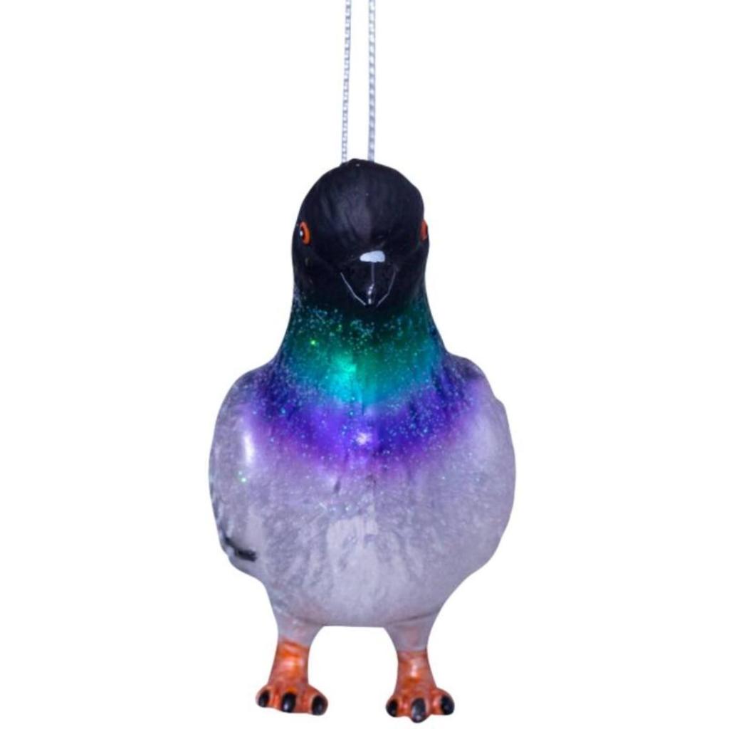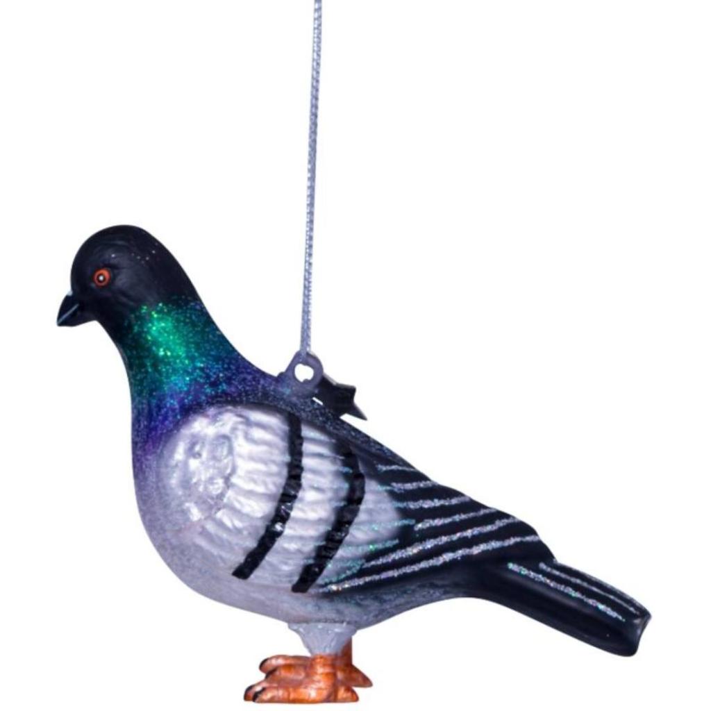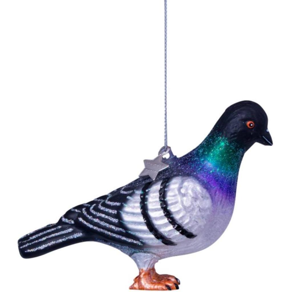 Breng een knipoog naar het stadsleven in je kerstboom met deze realistisch vormgegeven duif kerstbal van Vondels. Met zijn glinsterende veren in tinten zilver, zwart, groen en paars en feloranje pootjes is dit ornament een verrassende en speelse toevoeging tussen al je traditionele ballen. Gemaakt van glas en met de hand gedecoreerd, zoals je van Vondels gewend bent. Een leuke cadeau-optie voor stadsduivenliefhebbers, postduivenfans of gewoon iemand die een tikje eigenzinnigheid wel kan waarderen in de boom. 🟊 Let op: Cadeaudoosjes zijn bij ons los te bestellen. De juiste maat vind je via de link in de productomschrijving.