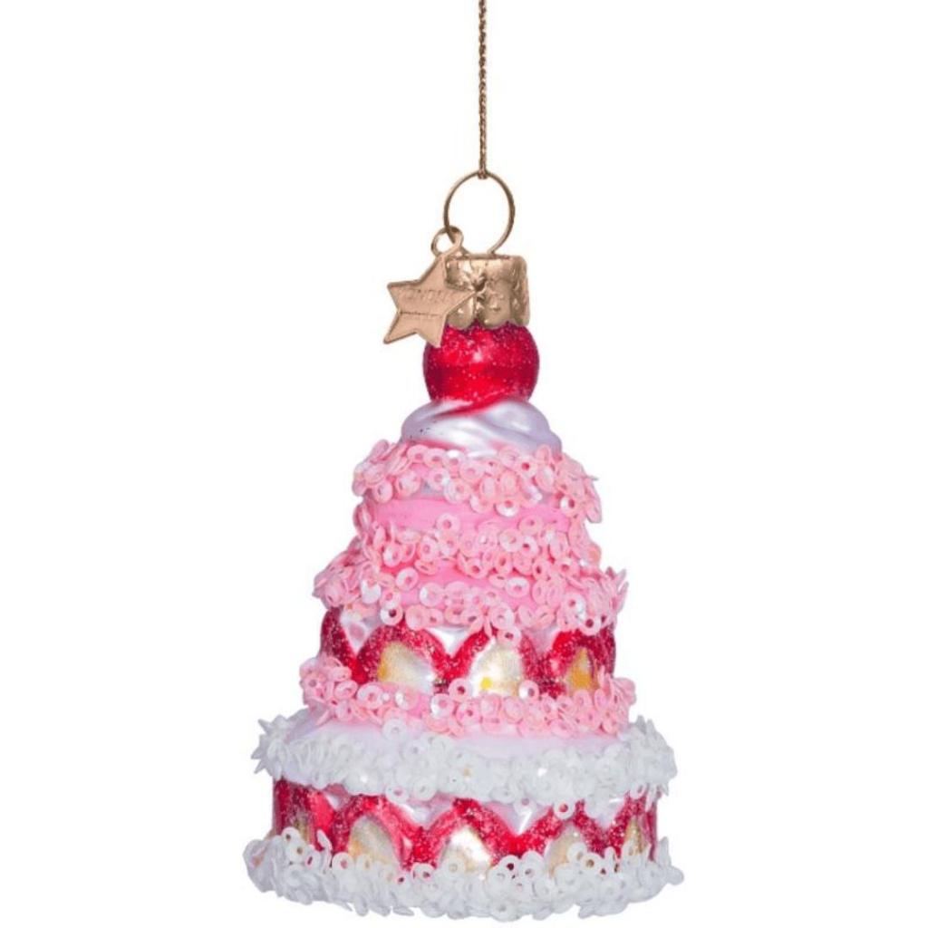 Zo zoet als kerst zelf! Deze aardbeientaart kerstbal van Vondels is een feestelijk én vrolijk ornament voor in de boom. De taart bestaat uit drie lagen, rijk versierd met witte glazuurdetails, roze pailletten en natuurlijk een glanzende aardbei bovenop. Gemaakt van mondgeblazen glas en met de hand beschilderd – een traktatie voor het oog.