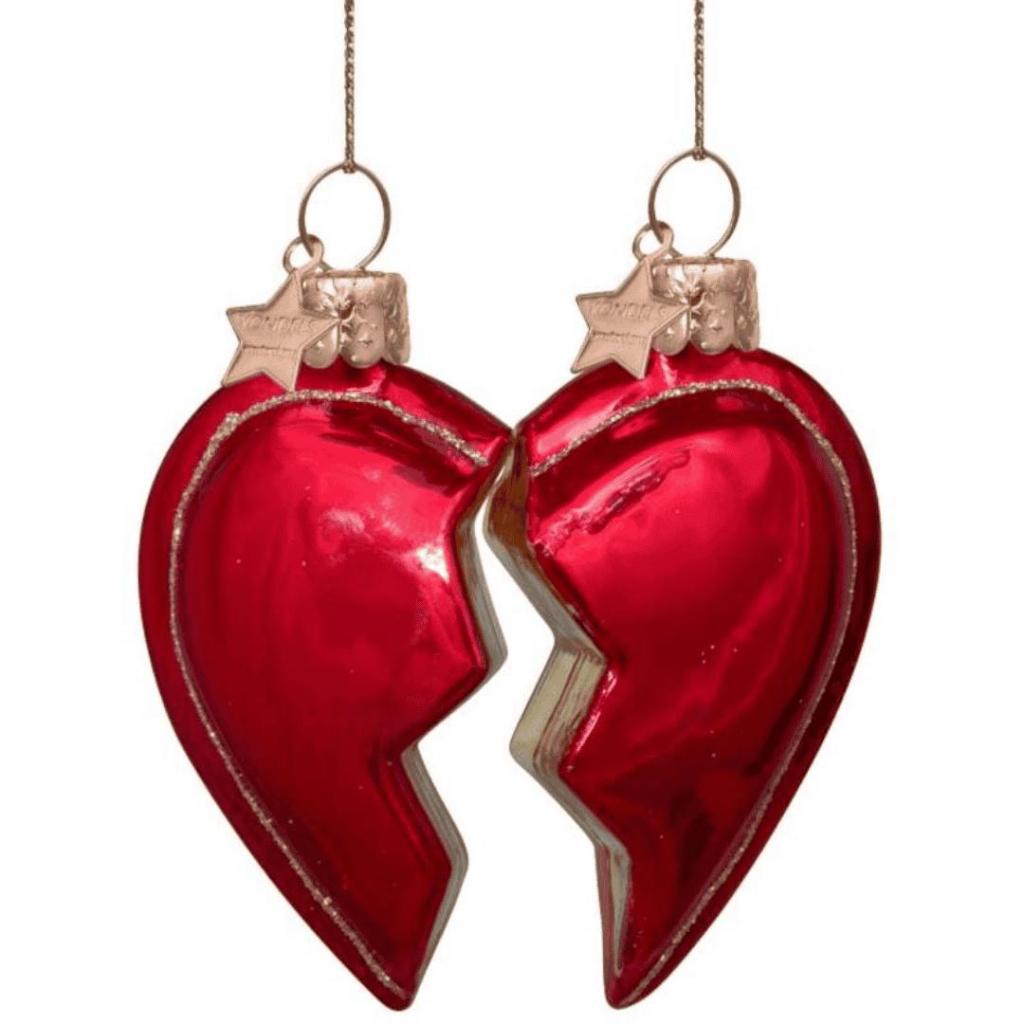 Kerstbal set Best Friends Hart – Set van 2 Rode Glazen Ornamenten van Vondels (8,5 cm)