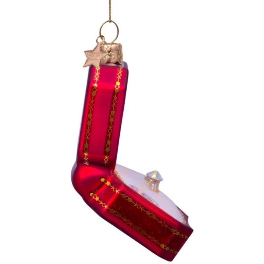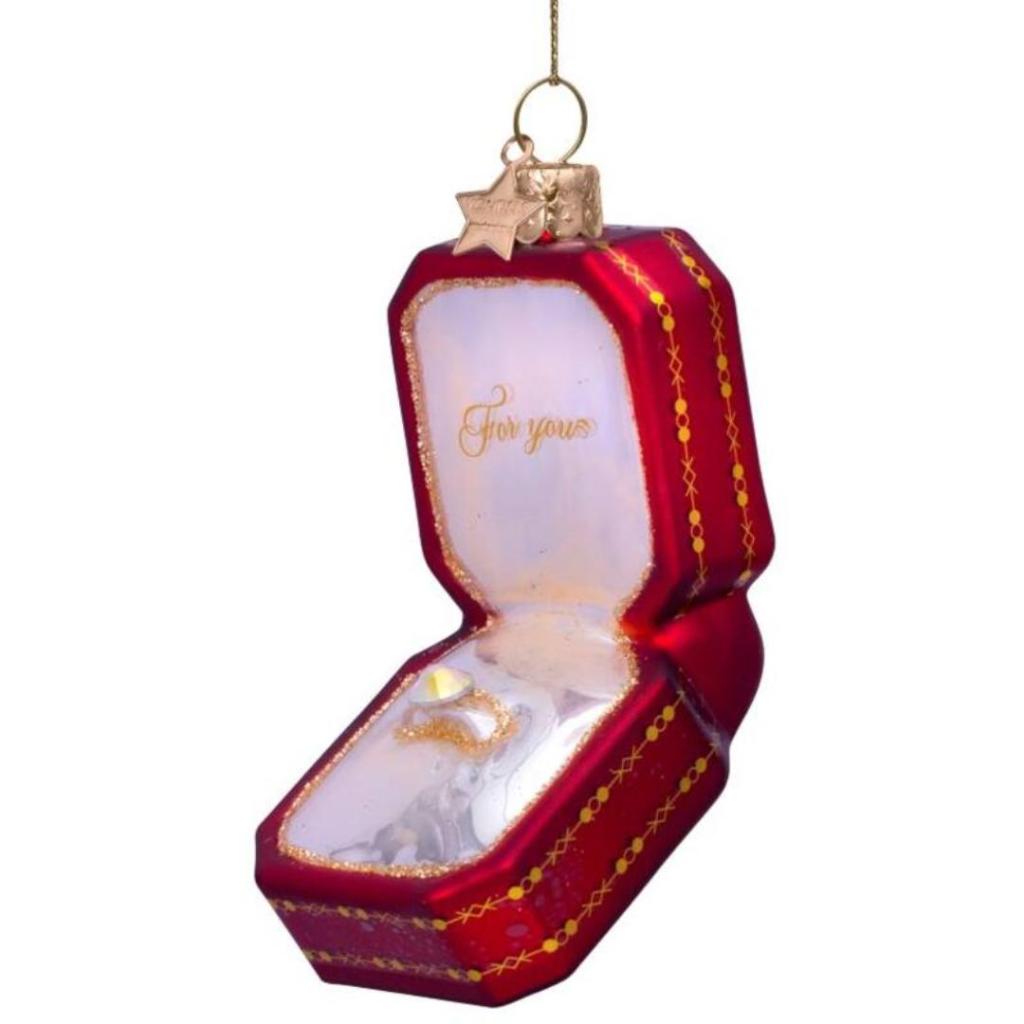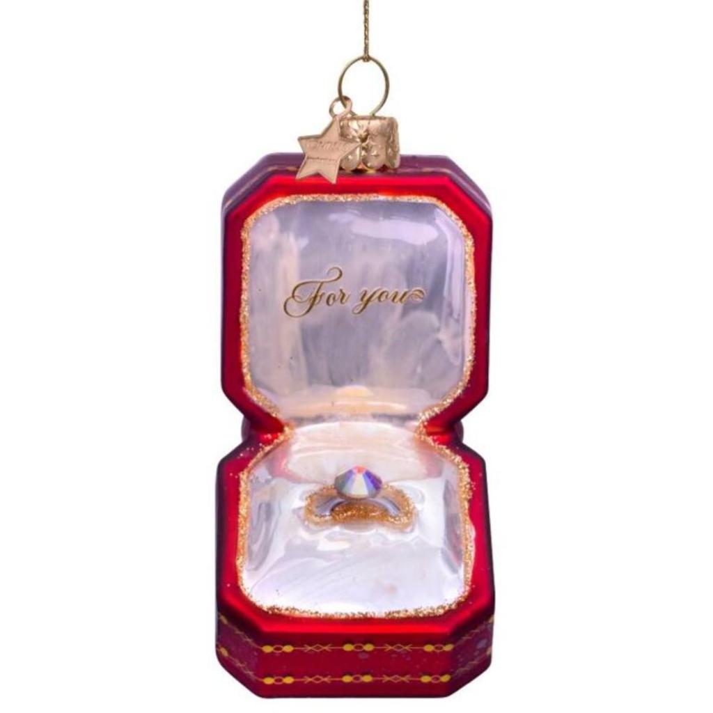 Kerstbal Trouwring For You – Glazen Ornament met Rode Ringdoos van Vondels