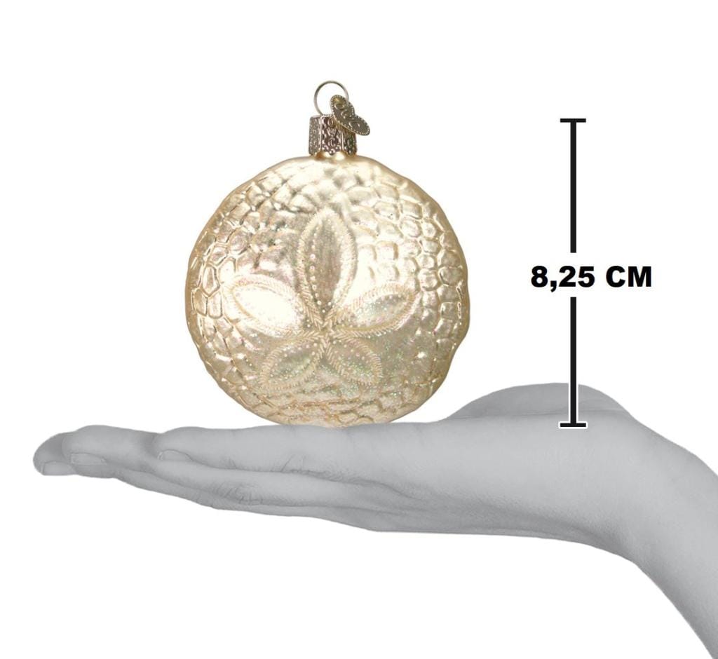 Deze glanzende Zanddollar schelp kerstbal van Old World Christmas zit bomvol details en mooie patronen. Deze en meer kerstballen vind je bij Alles in Wonderland in Rotterdam Noord.