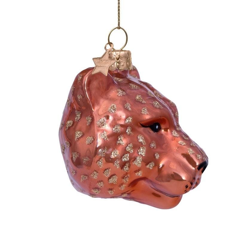 Met dit geweldige Oranje Panter Hoofd maak je jouw kerstboom beestachtig leuk. Deze glazen Kerstbal is van het merk Vondels en hangt prachtig aan de dennentak. De glitter vlekken lichten je kerstboom helemaal op. Deze stoere Kerstbal hebben we ook in de kleur Oud-roze. Samen staan ze erg mooi.