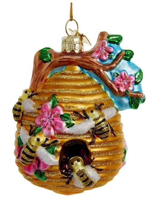 Kerstbal Bijenkorf met Bloemen en Bijen