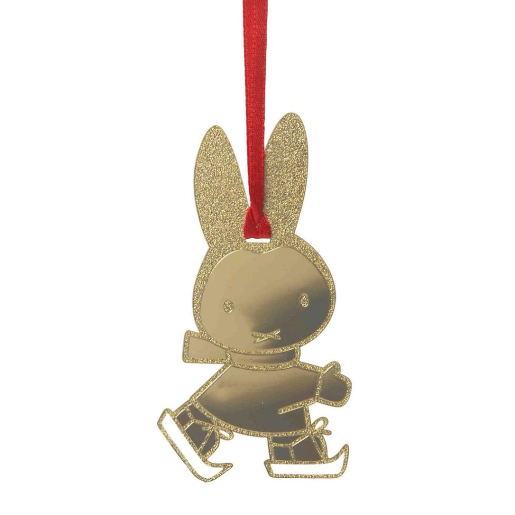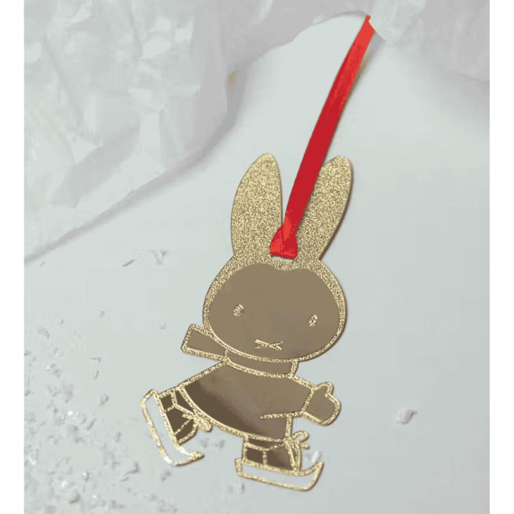Kersthanger Nijntje Schaatsend – Gouden Miffy Skating Ornament van Pluto Design