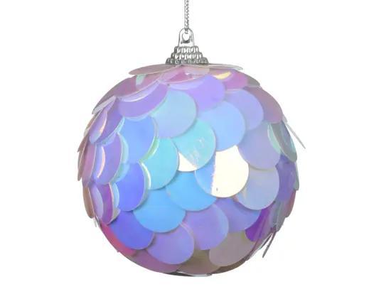 Deze onbreekbare kerstballen van Kaemingk hebben een opvallende schubbenstructuur die doet denken aan vis- of zeemeerminschubben. De glanzende, iriserende afwerking verandert van kleur afhankelijk van het licht, wat een betoverend effect geeft in de kerstboom.