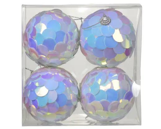 Onbreekbare Kerstballen Set van 4 – Schubbenstructuur IJsblauw – Ø 8 cm – Kaemingk