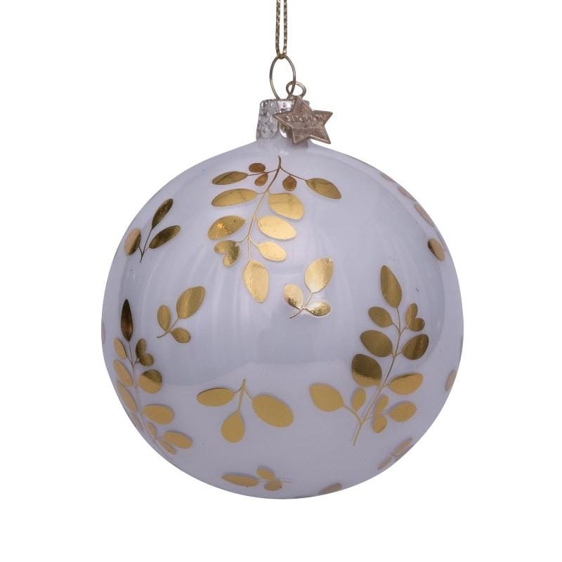 Kerstbal Wit Parelmoer met Gouden Bladeren