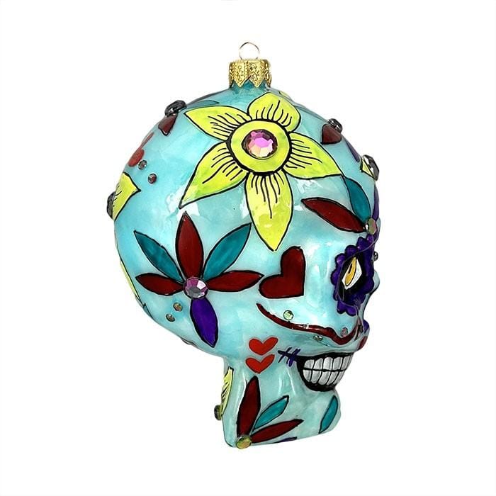 Kerstbal Skull met Bloemen – Handgemaakt Glazen Ornament van Joyland Factory (13 cm)