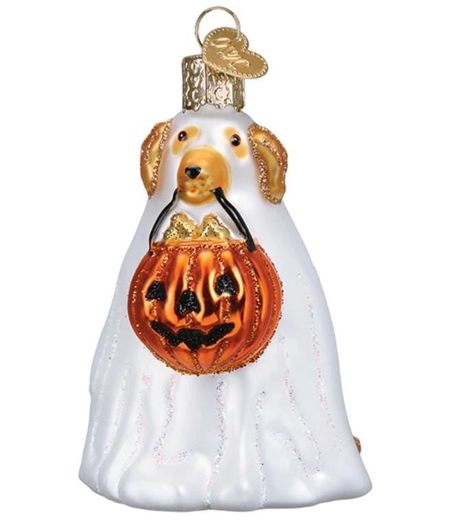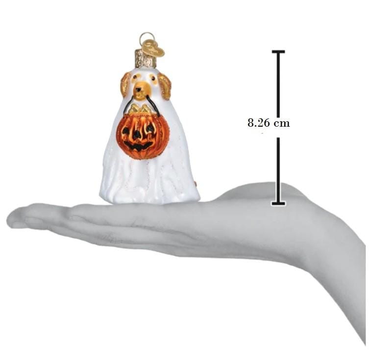 Deze lieve spookhond kan gewoon niet wachten om zijn snoepappelszak te vullen! Met zijn grote ogen en vriendelijke glimlach is deze kerstbal een leuke toevoeging aan elke kerstboom. Ideaal voor alle hondenliefhebbers en fans van een beetje griezelige gezelligheid.
