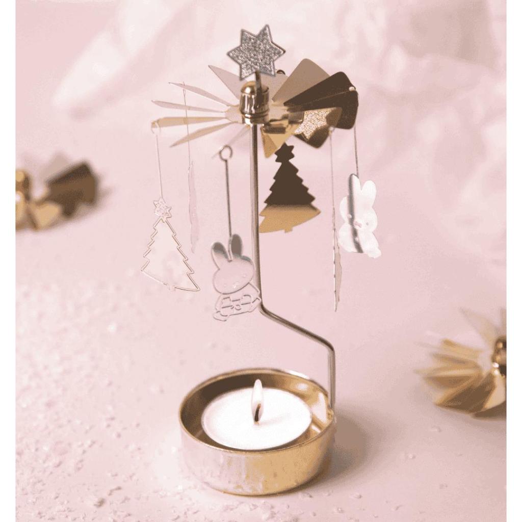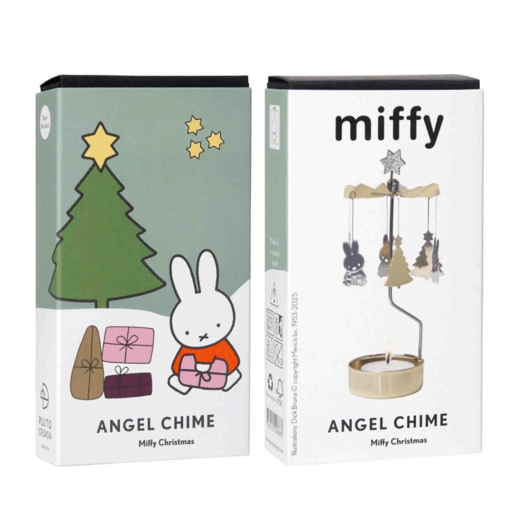 Deze Angel Chimes Nijntje Kerst van Pluto Design brengt direct een warme, speelse kerstsfeer in huis. Zodra het theelichtje brandt, begint de metalen waaier te draaien en bewegen de gouden en zilveren hangers – Nijntje, kerstbomen en sterren – zachtjes mee. Een klassiek winters tafereel in een moderne, minimalistische uitvoering.