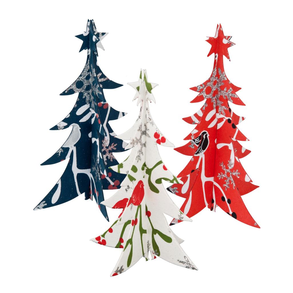 Breng je huis in kerstsfeer met deze papieren Kerstbomen van Pluto. Iedere ster bestaat uit 3 delen die je makkelijk in elkaar kan schuiven tot een 3D object. In de verpakking zitten 3 kerstbomen van verschillende kleur, rood, wit en donker groen. Leuk om op tafel te zetten bij het kerstdiner.