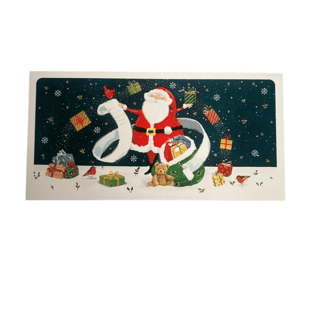 Postkaart Les Enchantées – Kerstman met Cadeautjes en Wenslijst