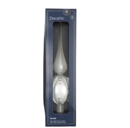 Kerstpiek Mat Wit met Zilveren Accenten – 31 cm – Glas