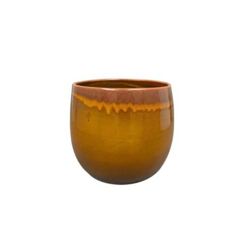 Bloempot Charlotte Oker D19 H16 – Keramiek met glanzend retro glazuur