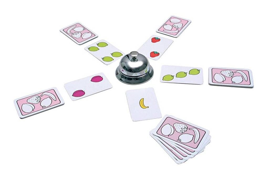 - Spelverloop: Iedere speler krijgt een gedekte stapel kaarten. Op elke kaart staan één of meer vruchten. Om beurten draait iedere speler een kaart om en legt deze op zijn eventueel eerder omgedraaide kaarten. Zo is voor iedere speler altijd maar één kaart zichtbaar. Als van een bepaalde vrucht precies 5 exemplaren zichtbaar zijn, proberen alle spelers zo snel mogelijk op de bel te drukken. Wie dat als eerste doet, krijgt alle open kaarten. Wie geen kaarten meer heeft, is uitgeschakeld. Wie blijft als laatste over?