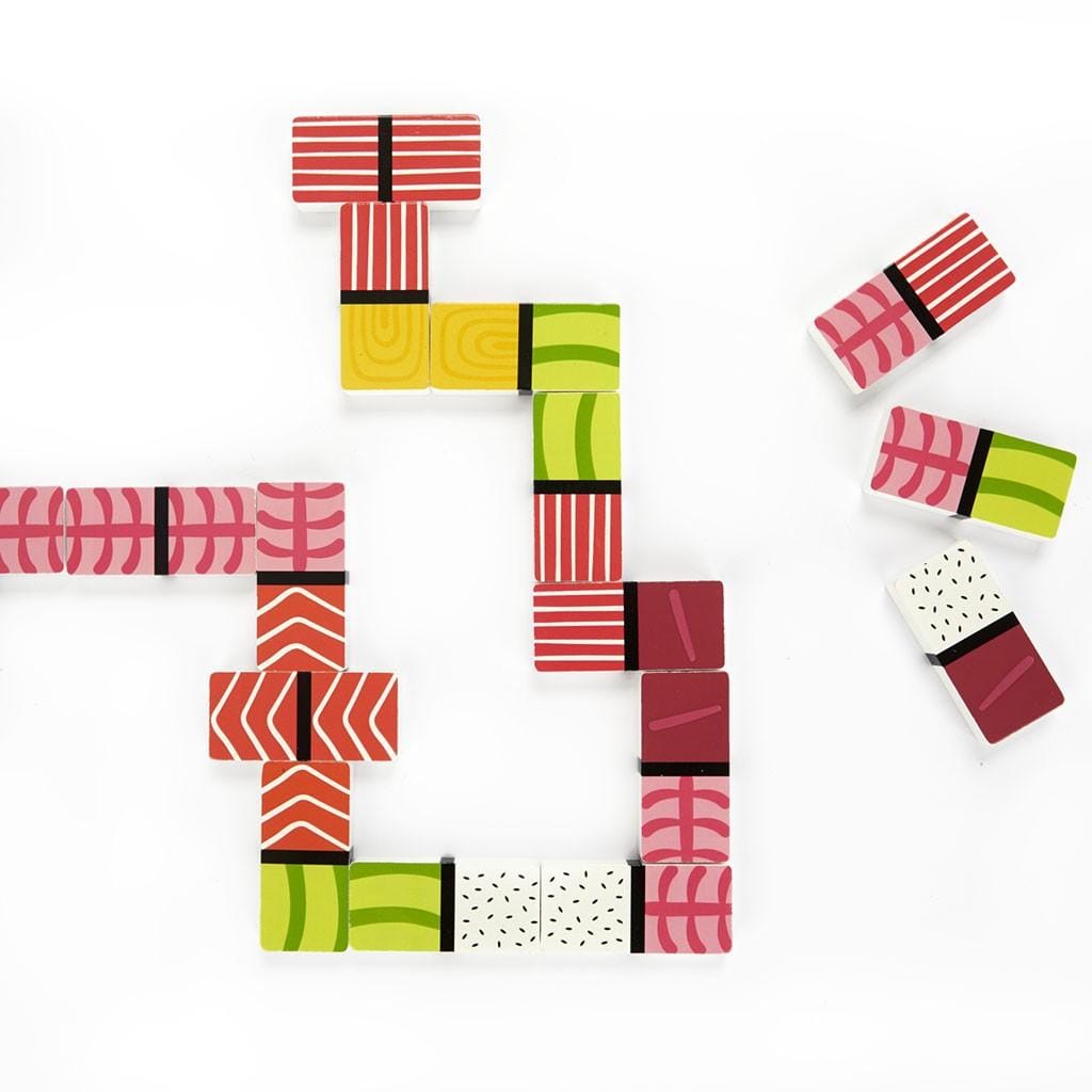 Domino is een spel dat je eindeloos kan blijven spelen. In sommige landen weten ze echt van geen ophouden. Misschien dat jij met dit nieuwe Domigiri Domino spel ook helemaal verslingerd raakt aan dit spelletje. Deze uitvoering is speciaal voor de echte Sushi liefhebbers. Alle 28 stenen hebben een prachtig gekleurd Nigiri design. Lukt het jou om als eerste al je stenen kwijt te raken?