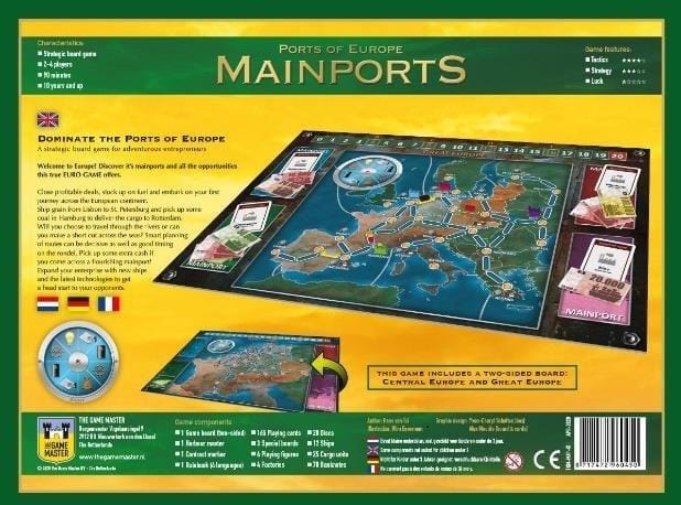 Ontdek de diverse Europese havens Het grote, dubbelzijdige spelbord toont een gedetailleerde kaart van Europa met bekende havensteden zoals Rotterdam, Antwerpen, Hamburg, Athene en Marseille. Elke haven biedt unieke mogelijkheden en uitdagingen, waardoor geen enkel spel hetzelfde is.