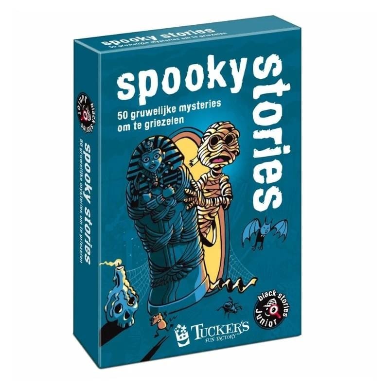 Wanneer bleke bloedzuigers zich met hun tanden in je nek willen vastbijten, woeste weerwolven huilen naar de maan en muffe mummies om middernacht uit hun graf kruipen dan is de tijd voor kippenvel en klapperende tanden aangebroken! black stories junior - spooky zorgen dat het bloed in je aders stolt. Je kunt deze duistere geheimen alleen ontwarren met vragen raden en puzzelen.