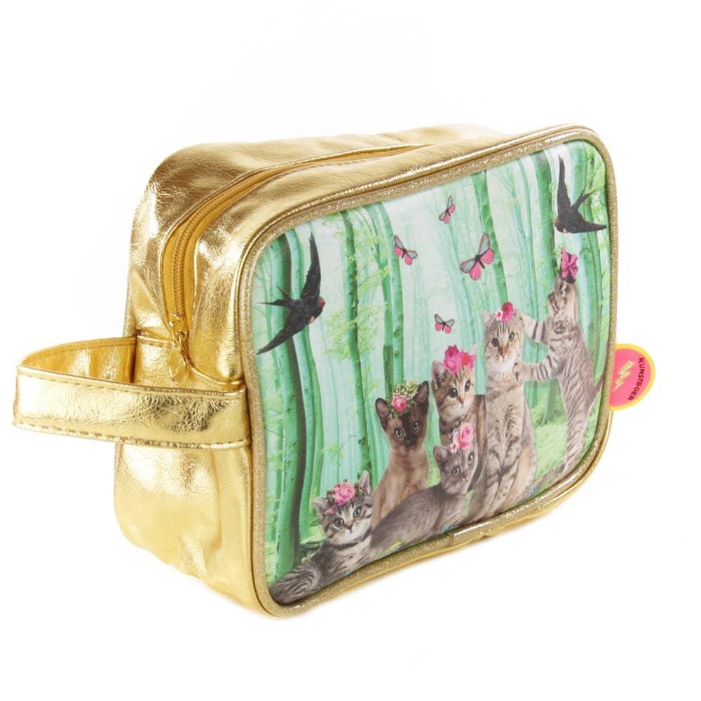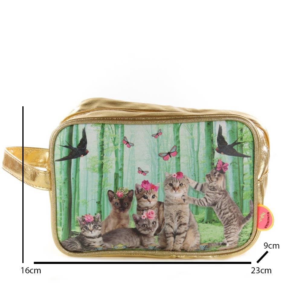 Deze vrolijke Toilettas Feestende Poesjes van Kunstboer brengt direct een glimlach op je gezicht! Het kleurrijke ontwerp met dansende en feestende katjes maakt je dagelijkse routine een stuk leuker. Gemaakt van stevig, glanzend kunstleer met een waterafstotende voering, ideaal voor al je verzorgingsproducten. De ruime ritsopening en stevige afwerking zorgen voor gebruiksgemak en duurzaamheid. Een perfecte accessoire voor kattenliefhebbers die houden van een speelse twist!