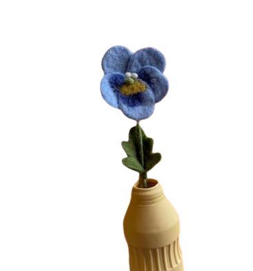 Geniet het hele jaar door van de schoonheid van bloemen met de Vilten Bloem Viooltje Blauw. Dit prachtige, met de hand gemaakte viooltje voegt een speelse en kleurrijke touch toe aan elk interieur. Perfect als losse decoratie, in een droogboeket of als duurzaam alternatief voor verse bloemen.