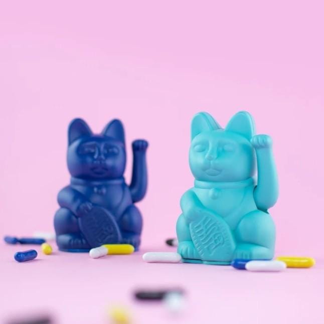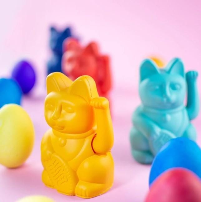 De wapperende kat in mini is ook verkrijgbaar in de kleuren donkergeel, donkerblauw en rood.