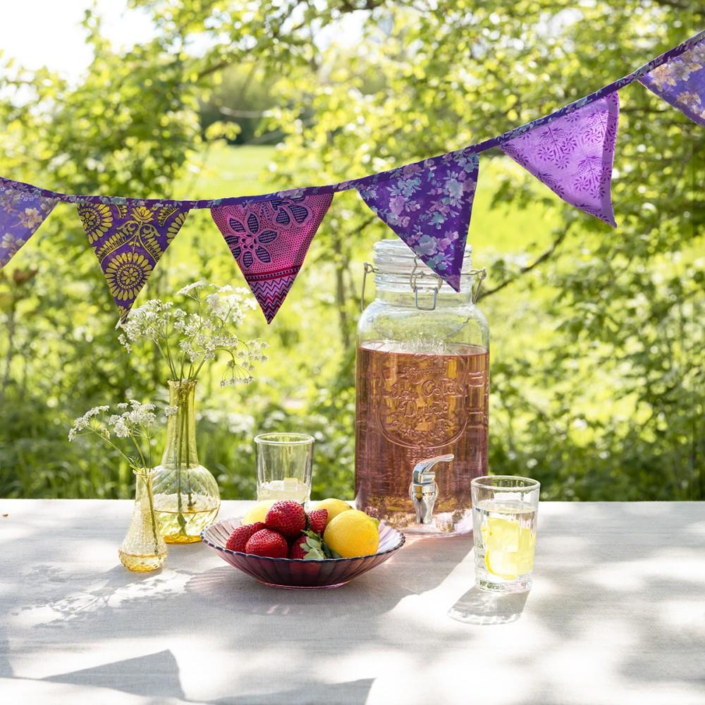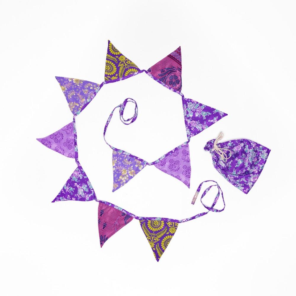 Voeg een sfeervol en speels accent toe aan je interieur of tuin met de Sarislinger Vlag Paarstinten Small! Deze prachtige slinger is met de hand gemaakt van gerecyclede sari’s, traditionele Nepalese kledingstukken, waardoor elk exemplaar uniek is. De warme paarstinten zorgen voor een feestelijke en elegante uitstraling, perfect voor verjaardagen, speciale gelegenheden of als blijvende decoratie. Dankzij de fairtrade productie ondersteun je Nepalese vrouwen, die met zorg en vakmanschap deze unieke slingers maken. Geleverd in een bijpassend zakje, zodat je hem gemakkelijk kunt opbergen en hergebruiken.