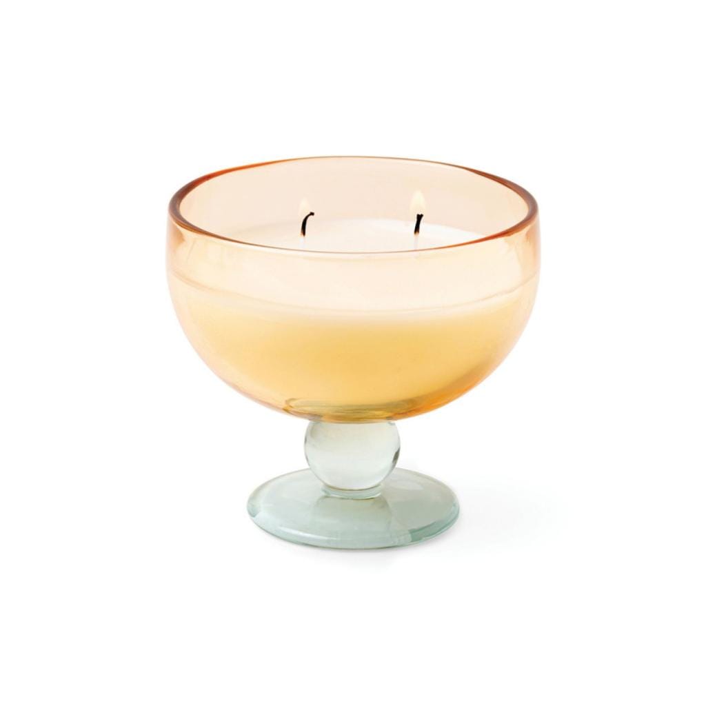 Haal de sfeer in huis met de Geurkaars Aura Geel Blauw Wild Neroli. Deze kaars met 2 lonten is het perfecte statement voor je huis met elementen van vintage glaswerk, levendige juweeltinten en luxueuze, gekruide geuren. Als de kaars op is, is het glas voedselveilig en perfect voor je volgende cocktail of ijscoupe!