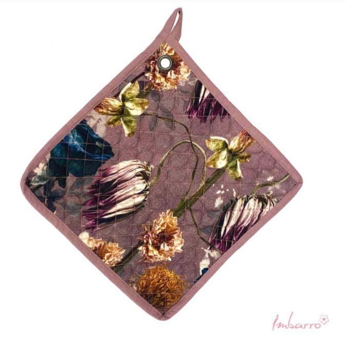 De mooie pannenlappen van Imbarro geven je keuken een fleurige noot, maar zijn vooral ook geschikt om hete ovenschalen en pannen op te pakken en te verplaatsen. De pannenlappen van Frija hebben een botanische design in donkere oudroze en paarse tinten en zijn 25 x 25cm groot.