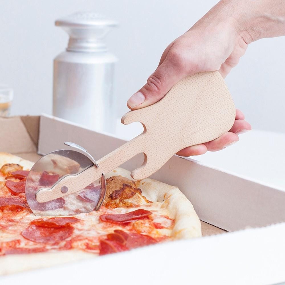 Ben je een echte muziekliefhebber en hou je van Pizza's? Deze gitaar is gemaakt van hout en het mes van RVS. Je gitaar gaat dus nooit roesten en kun je met veel plezier gebruiken voor je pizza’s. Door de vorm van deze pizzasnijder ligt hij ook nog eens plezierig in de hand. Was deze pizzasnijder wel even met de hand af en laat hem daarna goed drogen zodat het hout mooi blijft.