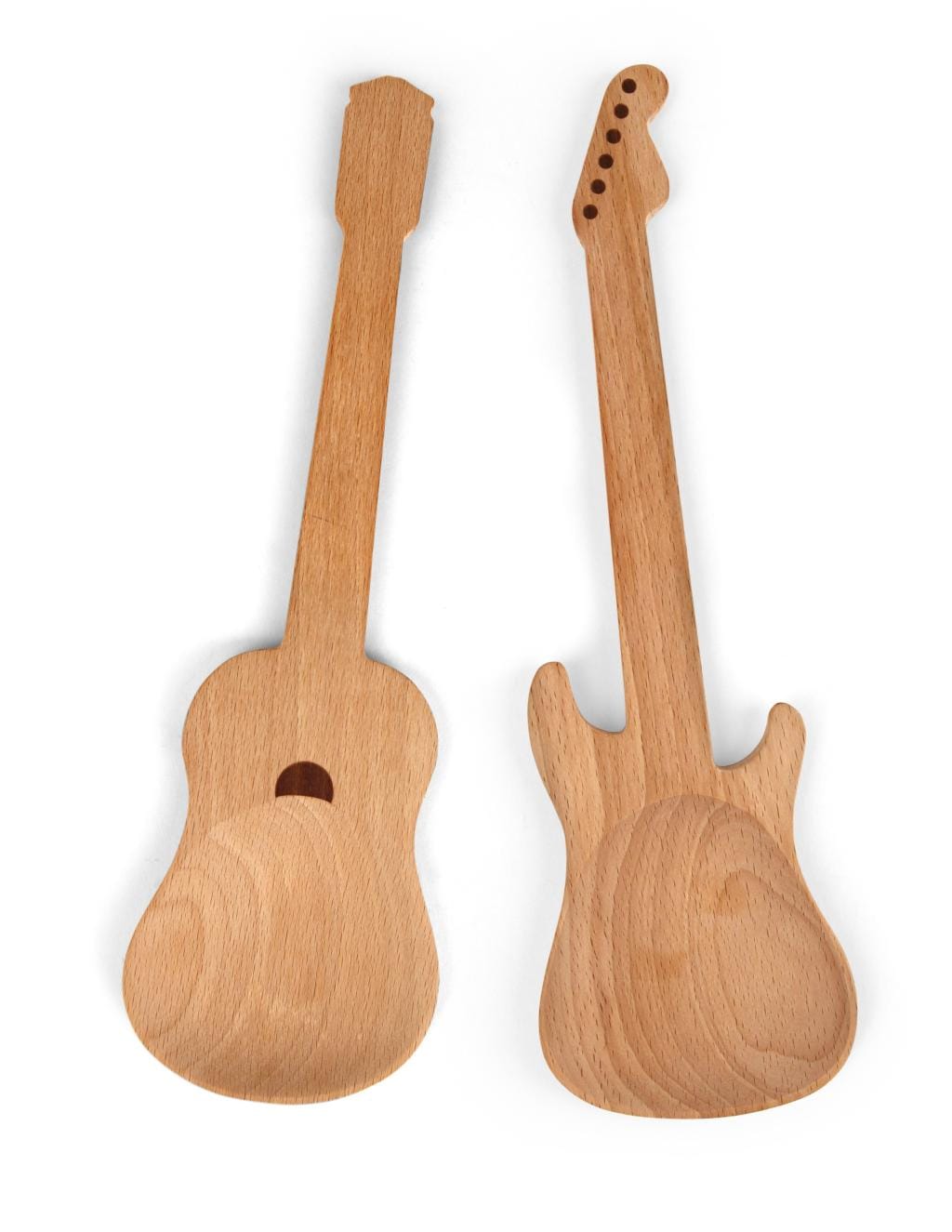 I Love Rock & Roll! Deze vette gitaren zijn een Must voor in je keuken. De set bestaat uit een Akoestische & Electrische Gitaar. Ontworpen door de jonge designer Bartjan de Bruijn. Gebruik de Rockin' Lepels om swingend te roeren in je soep, de boogiewoegie te dansen tijden het mixen van je beslag of shakend je salade op te dienen aan je gasten! Met deze Rocking Spoons blijft koken een feestje!