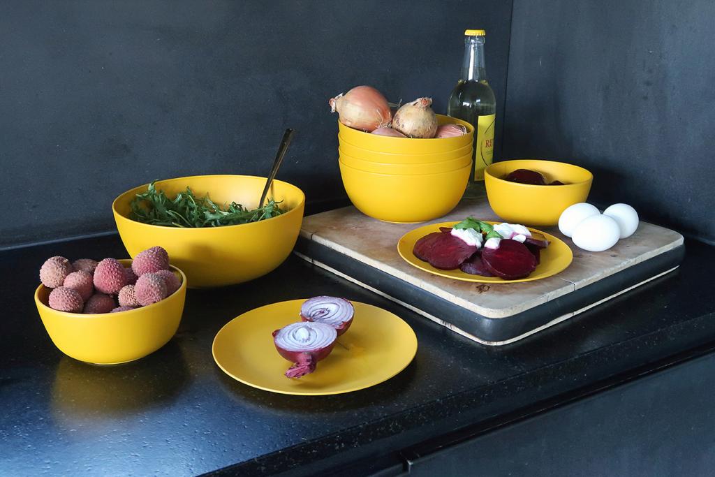 Dit servies wordt gemaakt met plantaardige wax, raapzaadolie, krijt, kiezel en glucose. Het gebruik van lokale en natuurlijke grondstoffen zorgt voor een minimale ecologische voetafdruk. Aardolie-plastic is verleden tijd! Zuperzozial laat zien dat design en duurzaamheid hand in hand gaan.