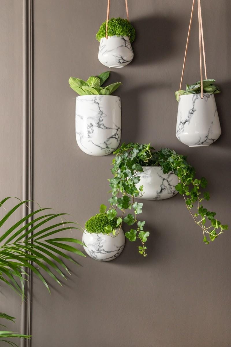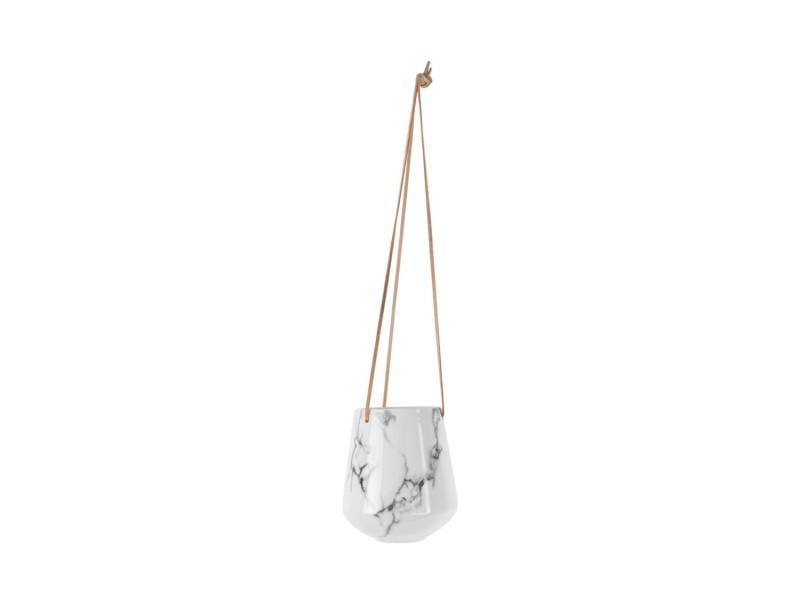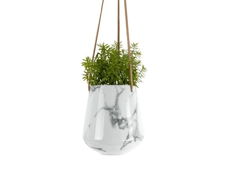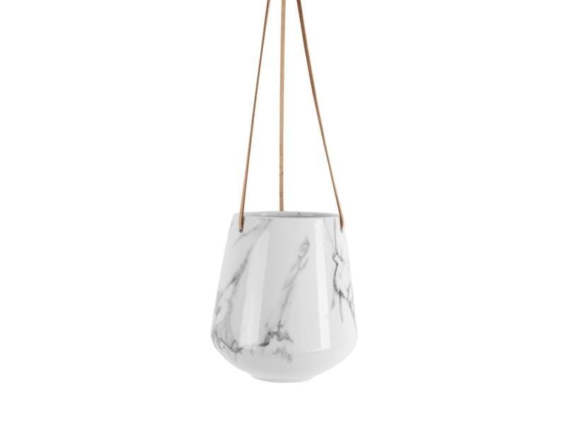 Hangpot Skittle Marmer Wit – Keramieken hangpot met leren hengsel, Ø13,5 x H15 cm (PT)