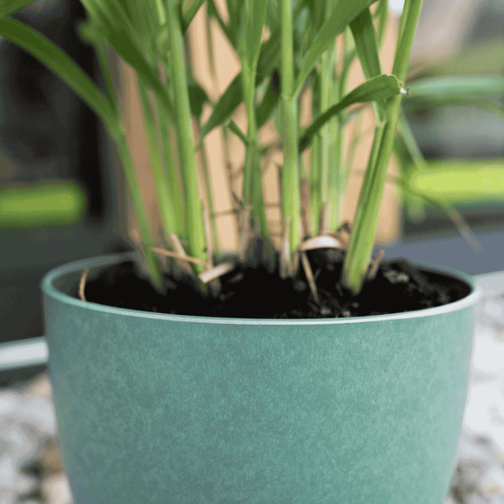 De Bola in de kleur Thyme is een royale bloempot met een tijdloze uitstraling. Vervaardigd uit een duurzame mix van gerecycled kunststof en natuurlijk steenpoeder, is deze pot zowel sterk als licht van gewicht. De natuursteen-look geeft Bola een stijlvolle en natuurlijke afwerking, waardoor hij perfect past in moderne en klassieke tuinen of interieurs. Dankzij het geïntegreerde drainagesysteem met een handige bodemplug is de pot geschikt voor zowel binnen- als buitengebruik. Met zijn ruime formaat van D33 × H29 cm is Bola ideaal voor grotere kamerplanten of kleine boompjes.