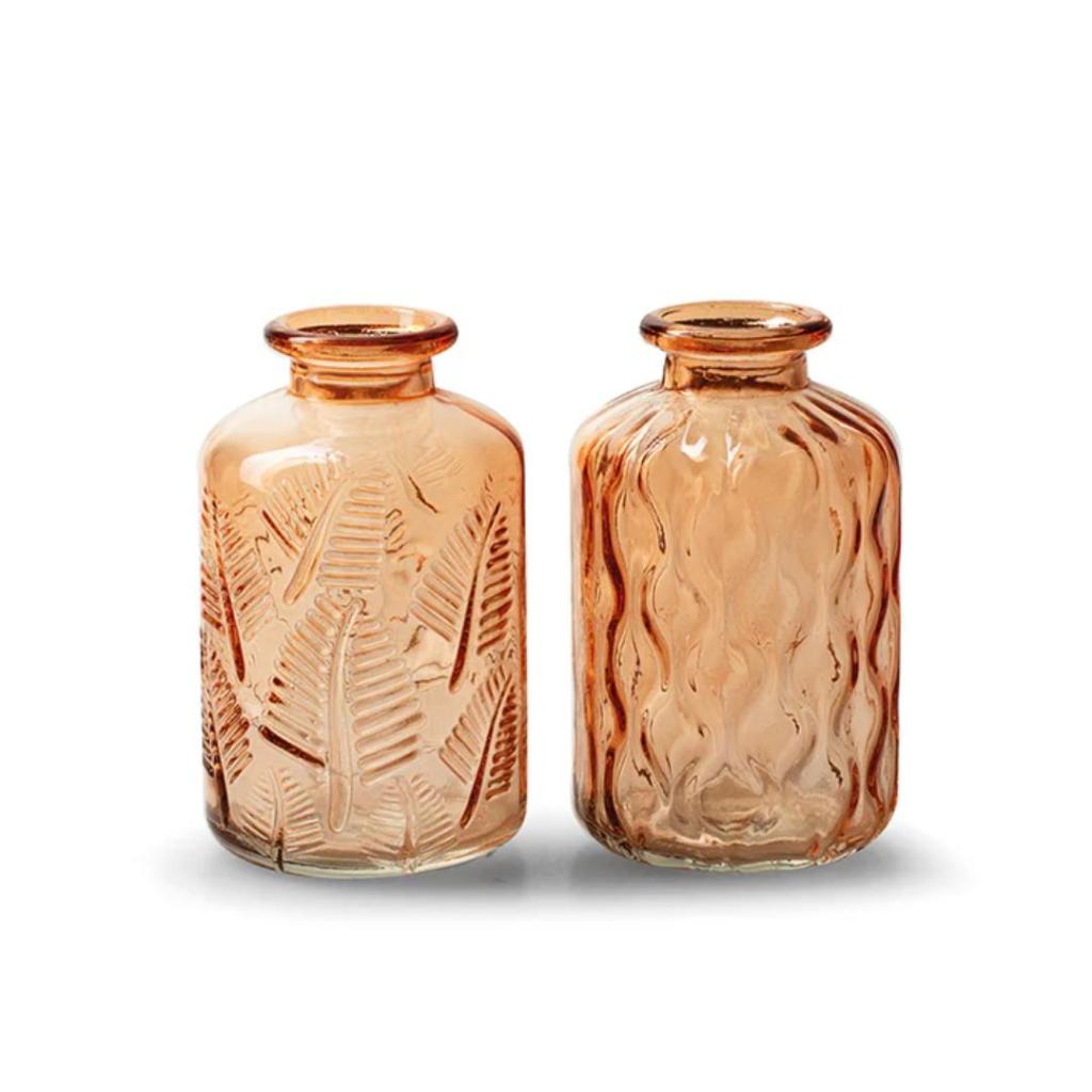 De Glazen Fles Tango Golven van Jodeco Glass is een sfeervol glazen vaasje met een subtiel golvend reliëf. Gemaakt van stevig zalm glas en met z’n compacte formaat (H10 × D6 cm) ideaal als enkel decoratief accent of gecombineerd met andere vaasjes. Prachtig met een droogbloem, grasje of gewoon als blikvanger op je vensterbank.