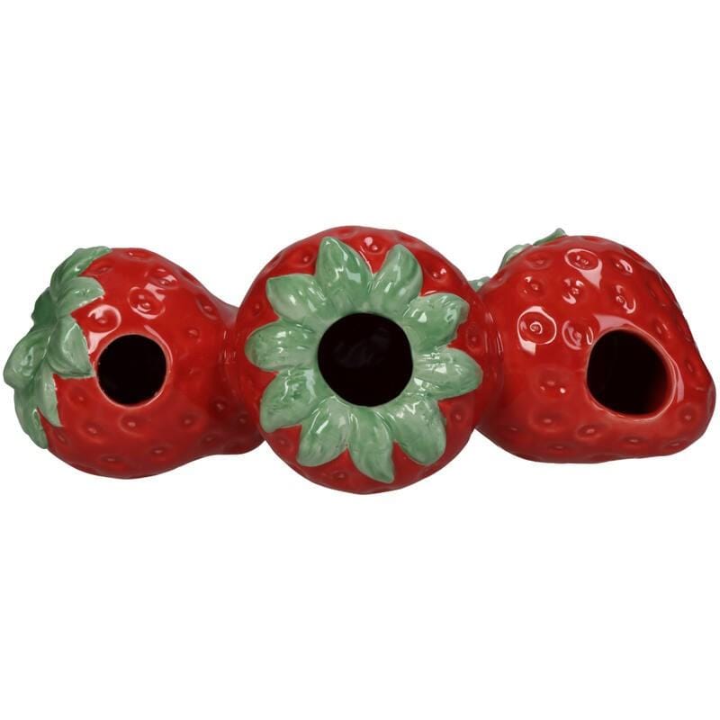 Deze leuke Aardbei vaas van KerstenBV is een leuke toevoeging van je interieur in de zomer maanden of als je graag de zomer in huis haalt! Je kunt deze vaas vullen met verse bloemen of een boeket van kunstbloemen om de zomerse sfeer te versterken. Ook leuk om te combineren met de andere fruitvazen.