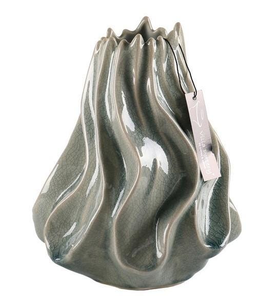 Deze vaas is uitermate geschikt om een, niet te groot boeket in te kunnen zetten. De vaasopening is redelijk ruim waardoor ook boeketten met wat dikkere stelen hierin passen. Doordat dit vaasje wat breder is dan de andere vazen uit deze serie zien de golvende vormen er wat anders uit. De kleuren van de vaas komen op de foto niet helemaal tot zijn recht. De vaas is lichter dan op de foto.